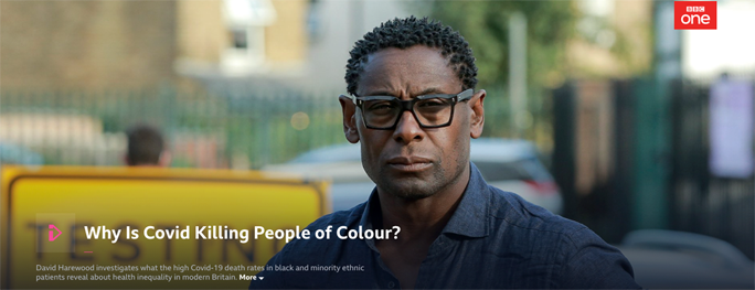 [1] ‘Why is Covid Killing People of Colour?’, BBC One (2021) – https://www.bbc.co.uk/programmes/m000sv1d